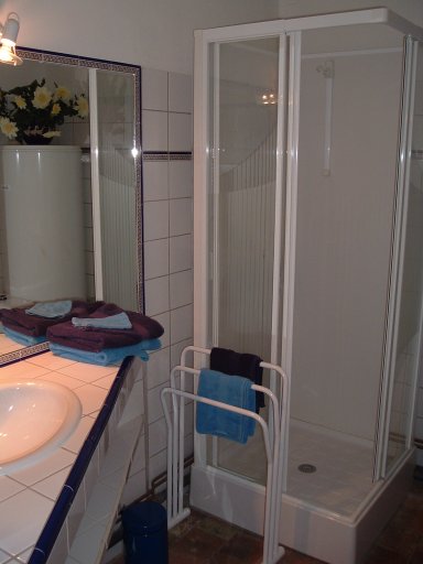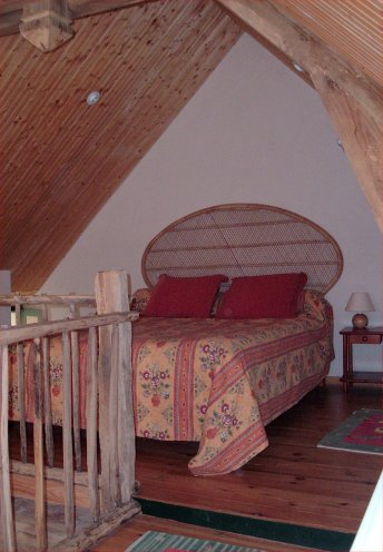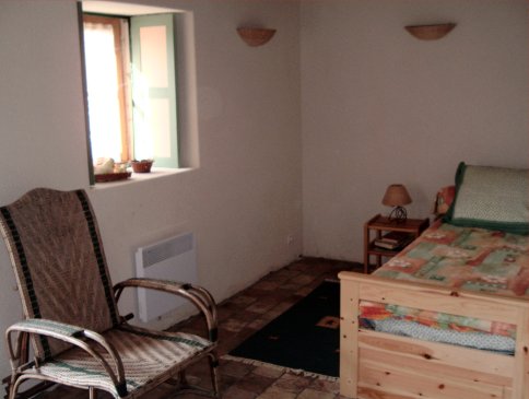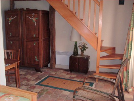 Ground floor: wide bathroom, stowaway bed (2 places) First floor: Big bed - 160 cm - with latex mattress. Private bathroom with shower & WC